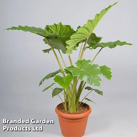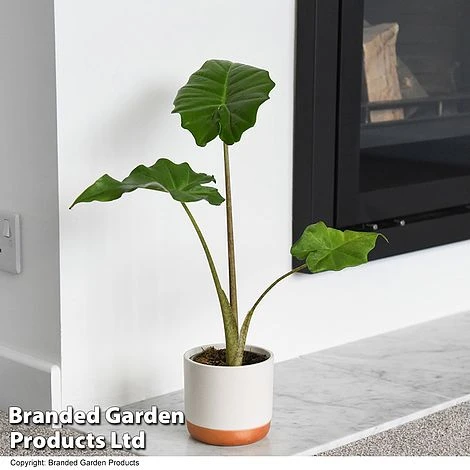 Alocasia are always impressive plants and ‘Portodora’ is no exception. Thick green stems flare up into large, scallop-edged, arrow-shaped leaves. Alocasias enjoy a humid atmosphere and frequent, moderate watering so it’s ideal for a kitchen or bathroom where it will instantly create a jungle vibe with its fantastically lush and glossy foliage. Height and spread: 100cm (39″).