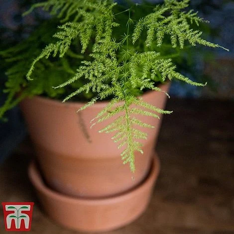 An attractive indoor fern with soft, feathery foliage, Asparagus setaceus sits beautifully within any contemporary or modern interior. The fresh green leaves are a welcome splash of natural colour which suits all styles. With its soft texture, this fern is a particularly lovely desk plant – the perfect living greenery for any well-lit home or office space. Height: 1m (39”). Spread: 45cm (18”).