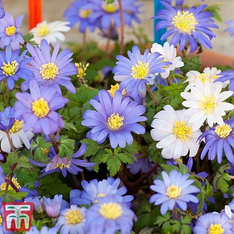 - 50 x Anemone blanda – These spreading woodland perennials create a great profusion of blue, pink and white anemone flowers over many weeks throughout spring. Height: 10cm (4″). Spread: 15cm (6″).
