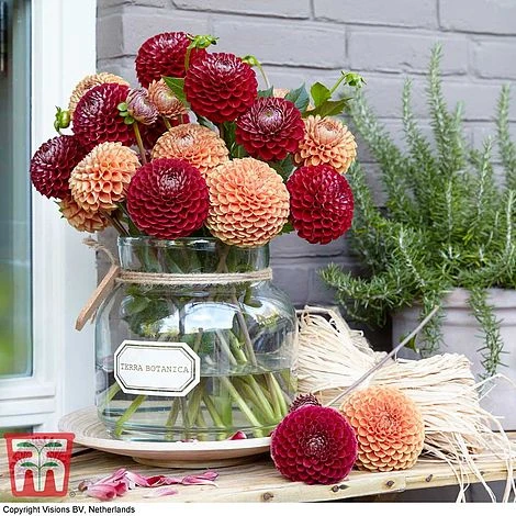 This magnificent duo of Ball Dahlias boast perfectly sculpted blooms on bushy, compact plants. Their architectural forms make these beauties ideal for cutting and adding to summer bouquets. In the border, they have real presence, creating a showy and distinctive focal point. Perfect for sunny herbaceous borders, tropical planting schemes or mixed Dahlia beds. Height: 90cm (36″). Spread: 45cm (18″).