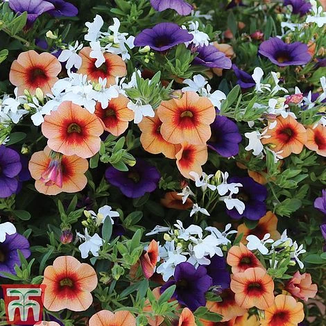 Fruit Salad is a new addition to our range. Each jumbo plug plant contains 3 plants which grow together to create a fantastic mixed display in your hanging baskets! Fruit Salad creates a beautiful display of petunias and lobelia in shades of red, white and purple, especially when you order it ready planted! Each basket, containing compost with plant food already added, is guaranteed to put on an impressive display right through the summer. Simply hang-up, water, and enjoy the fabulous summer colour.